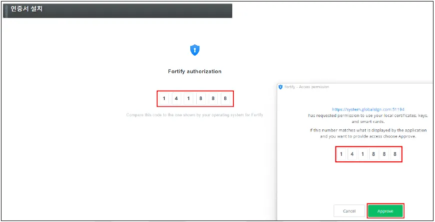 인증키가 일치하면 Approve를 선택하여 진행합니다.