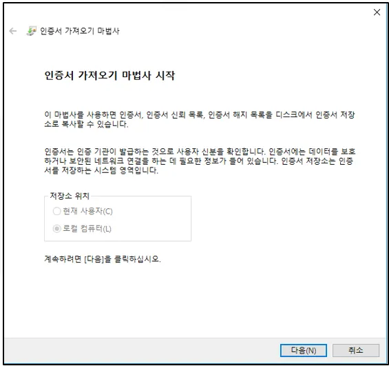 ⑧ ‘인증서 가져오기 마법사’에서 인증서를 선택합니다.
