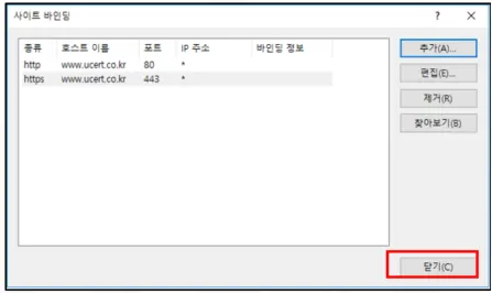 ③ 변경된 인증서를 확인하신 후, 닫기를 클릭합니다.