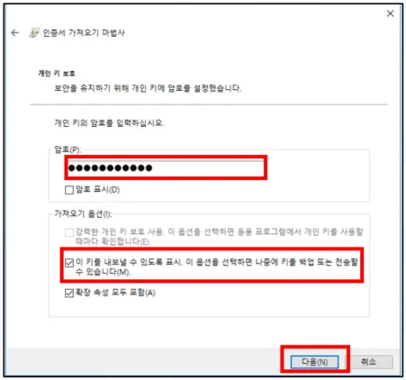 ⑨ 비밀번호를 입력하고 개인용 저장소를 선택합니다.