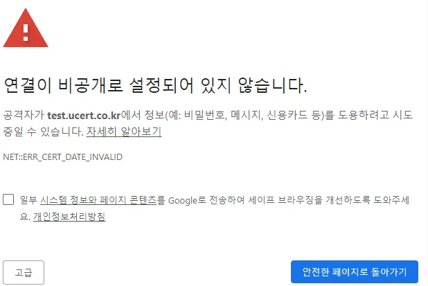 Q6. “이 사이트는 안전하지 않습니다” 에러 페이지 발생합니다.