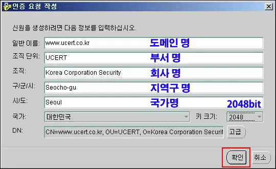 4. 생성 정보를 입력한 후, 확인을 클릭합니다.
