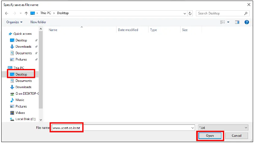 Ex) C:/Users/Administrator/Desktop/www.ucert.co.kr.txt
