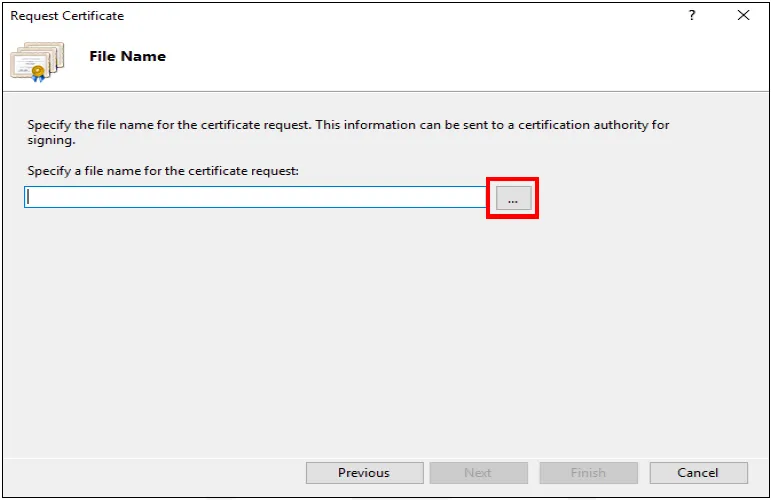 6. CSR 파일의 저장 위치를 위해 아래 해당 버튼을 클릭합니다.
