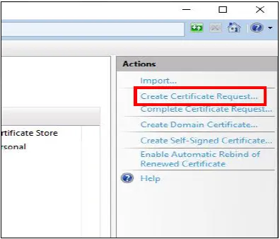 3. “작업” 메뉴에서 “인증서 요청 만들기”를 선택합니다.