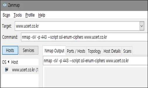 nmap -sV --script ssl-enum-ciphers -p <포트번호> <host>