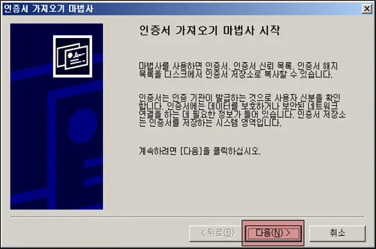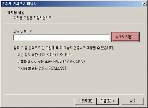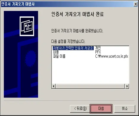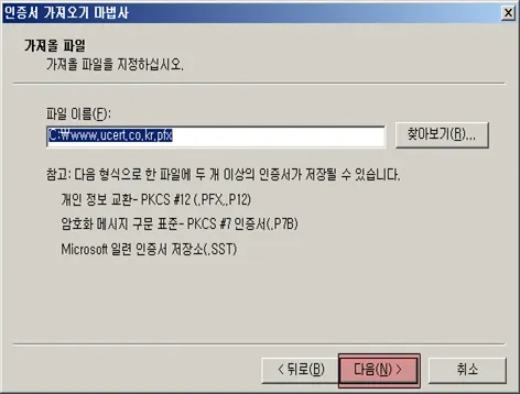 ※ 인증서파일의 파일명은 예시이므로 사용자 설정에 따라 인증서 파일명이 달라질 수 있습니다.
