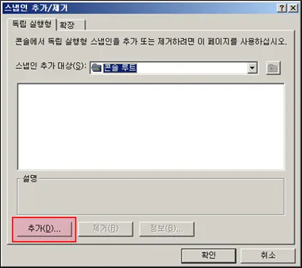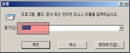① 시작 → 실행 → mmc 를 입력 한 후 확인을 클릭 합니다.