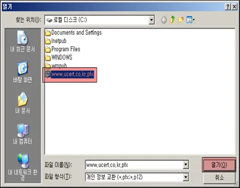 ⑤ 발급 받은 인증서를 선택 후 열기를 클릭 합니다.