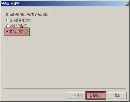 ⑤ 컴퓨터 계정을 선택 후 다음을 클릭 합니다.