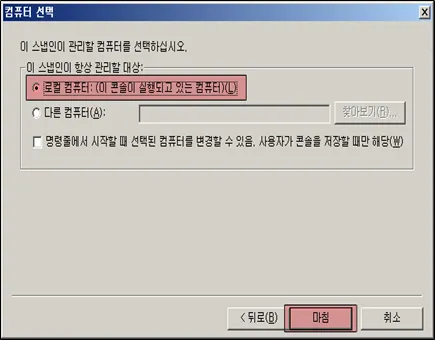 ⑥ 로컬 컴퓨터(이 콘솔이 실행되고 있는 컴퓨터(L))를 선택 후 마침을 클릭 합니다.