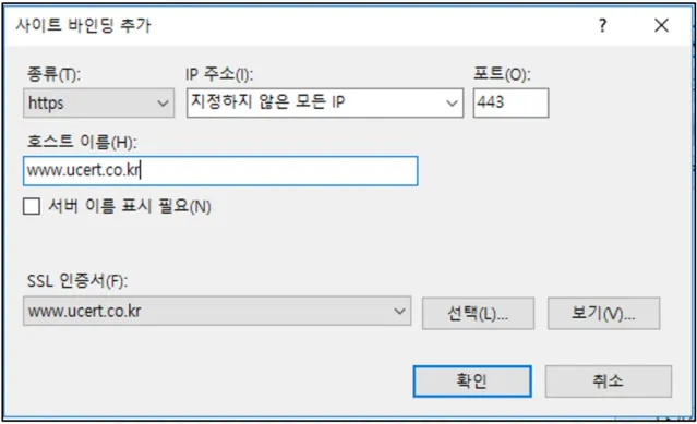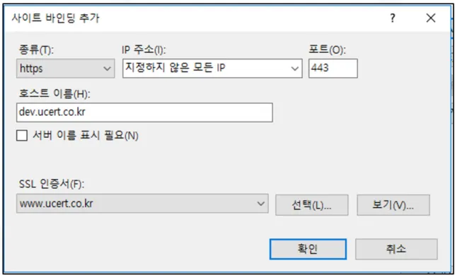 1. 바인딩 편집에서 인증서 보기를 클릭합니다.