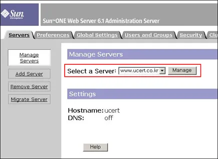 ① 해당 서버를 선택하여"Manage"를 클릭하여 설정으로 들어갑니다.