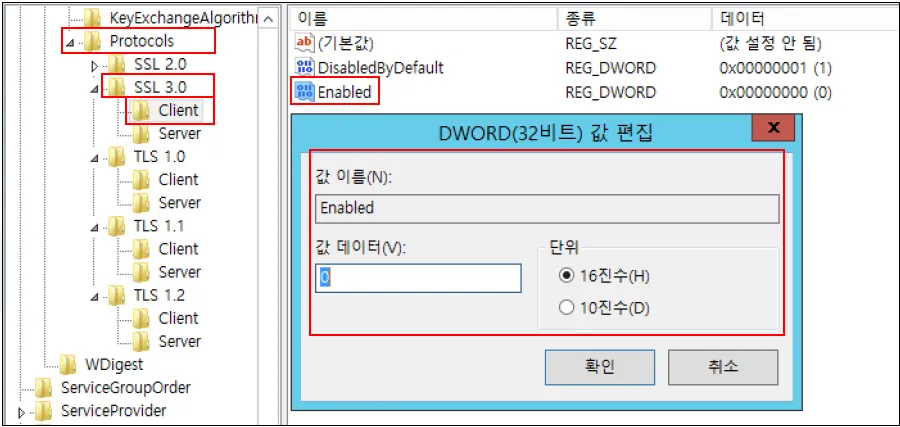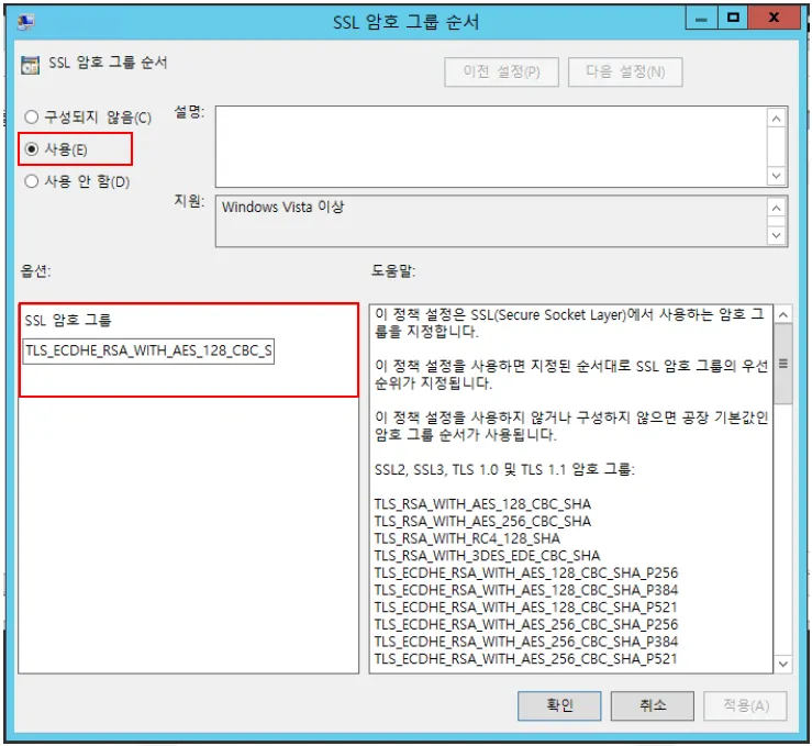 - SSL v3, TLS v1.0, TLS 1.1 제한 방법