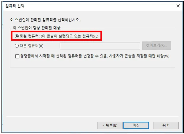 ⑤ 로컬 컴퓨터를 선택합니다.